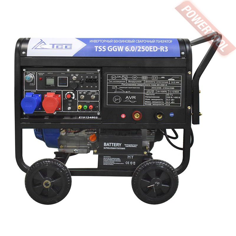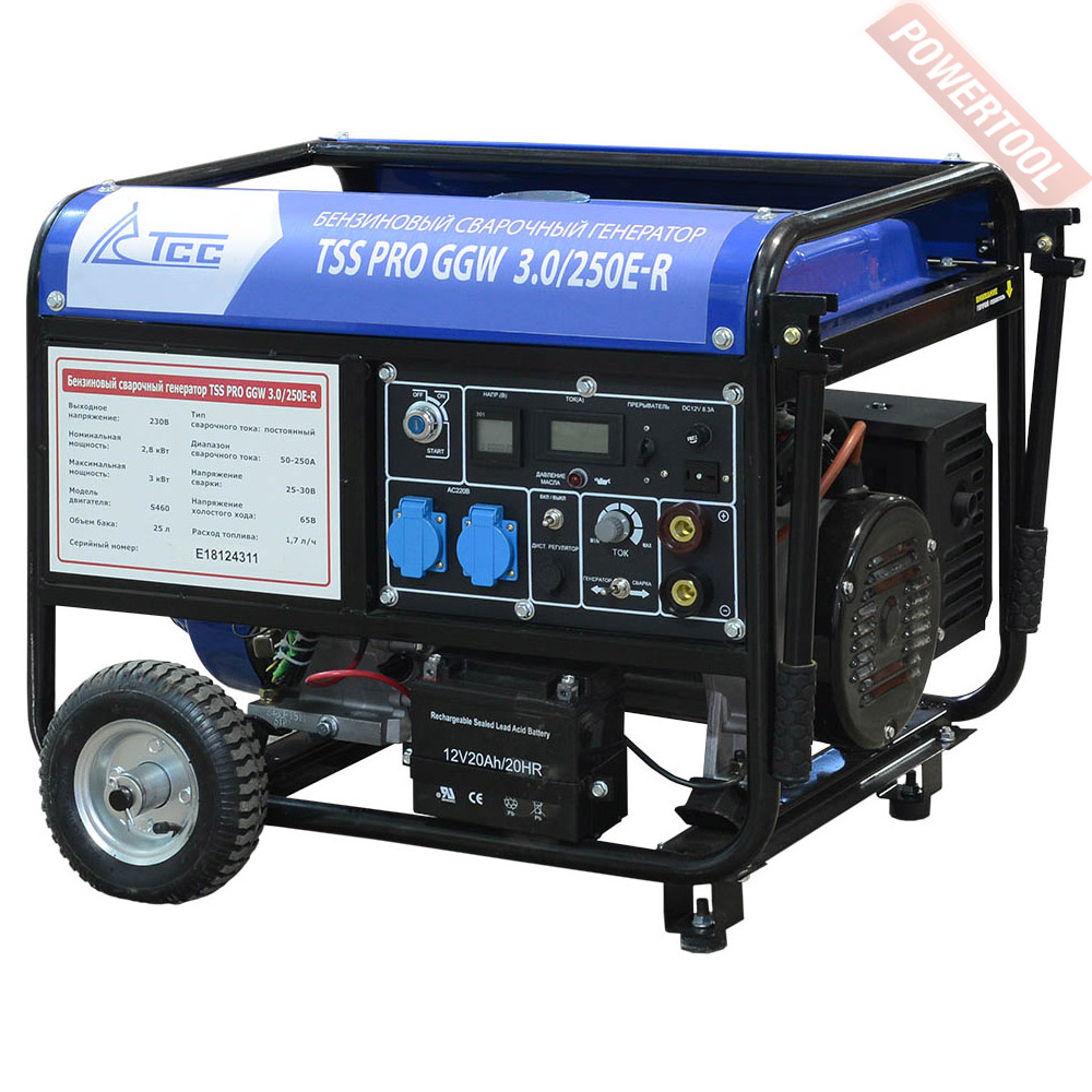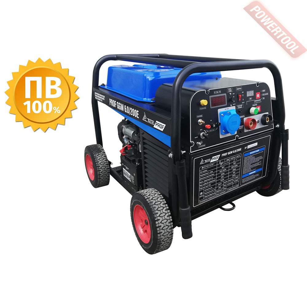 Сварочный генератор бензиновый автономный инвертор для ручной электродуговой сварки MMA, напряжение 230 В, мощность 4 кВт, сварочный ток 200 А, диаметр электрода 1,6-4 мм, 4-тактный бензиновый двигатель KOHLER Command Pro CH440 объемом 429 куб.см и мощностью 14 л.с., топливный бак 7,3 л, расход топлива 3,8 л/ч, емкость картера 1,3 л, 2 розетки 230В 10/16A, ящик для хранения, габариты 810х555х590 мм, вес 93,5 кг, комплект для сварки, колеса и ручки приобретаются отдельно.
