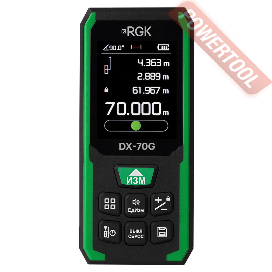 - Функция непрерывных измерений (трекинга) позволяет отложить необходимое расстояние до объекта. При перемещении прибора значения на экране будут меняться в режиме реального времени.