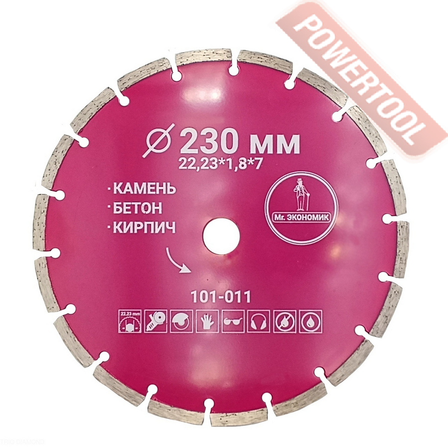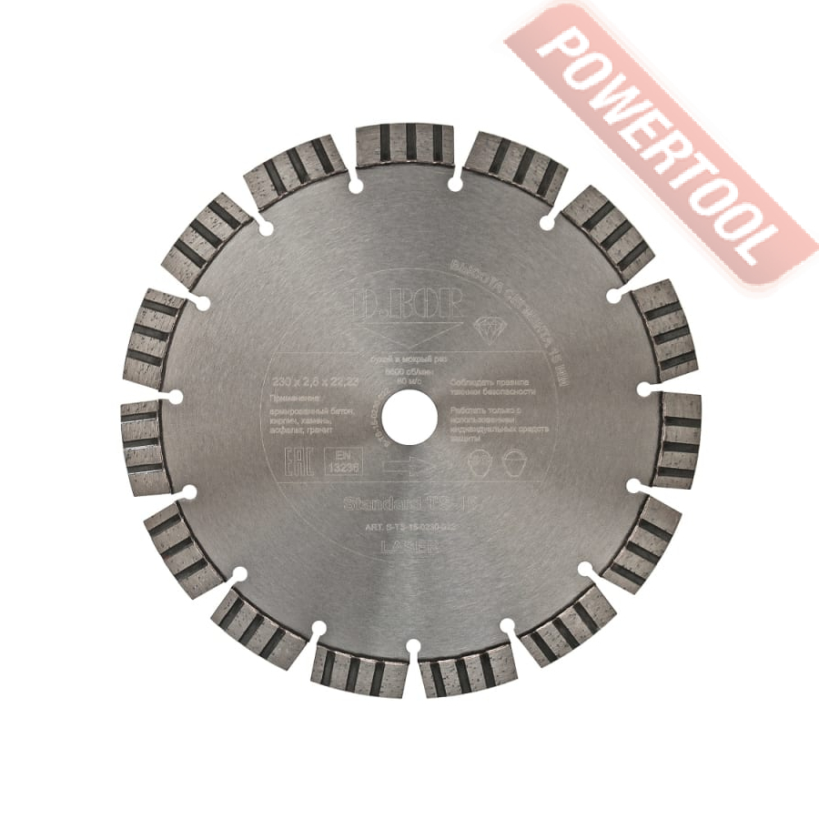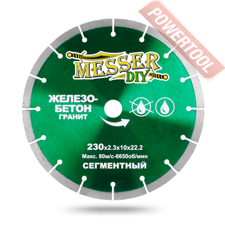 Диск алмазный сегментный по железобетону, диаметр 230 мм, посадочное отверстие 22,23 мм, лазерная сварка, сухой и мокрый рез, оптимально режет железобетон, гидробетон, бетонные изделия, бордюрный камень, дорожный бетон. Диск с максимальной скоростью резки и стойкостью.