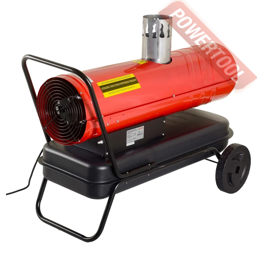 - Транспортировка. По своим характеристикам имеет компактные габариты и вес, что делает ее эргономичной и удобной для перевозки. Колеса и удобная рукоятка позволяют с легкостью перемещать тепловую пушку по объекту.