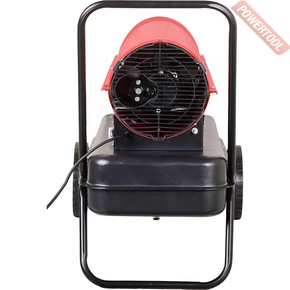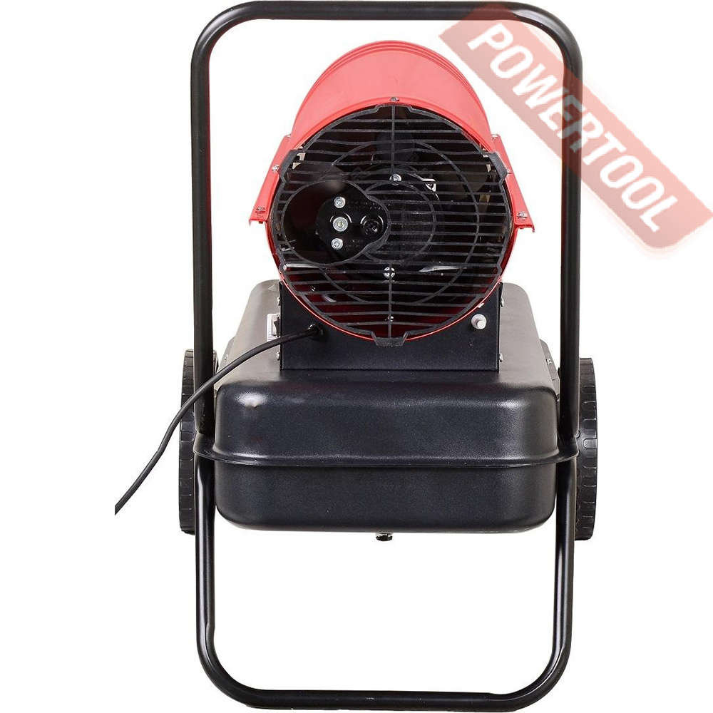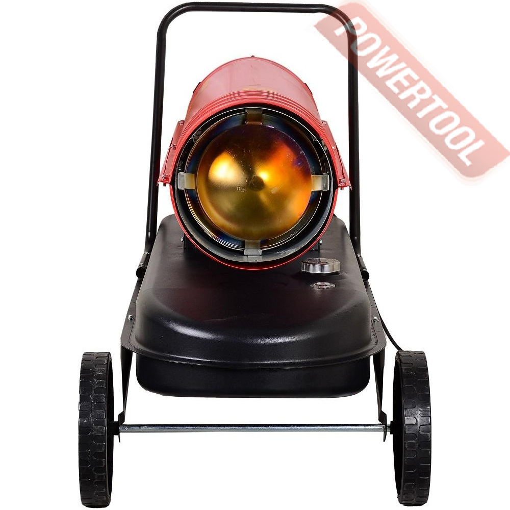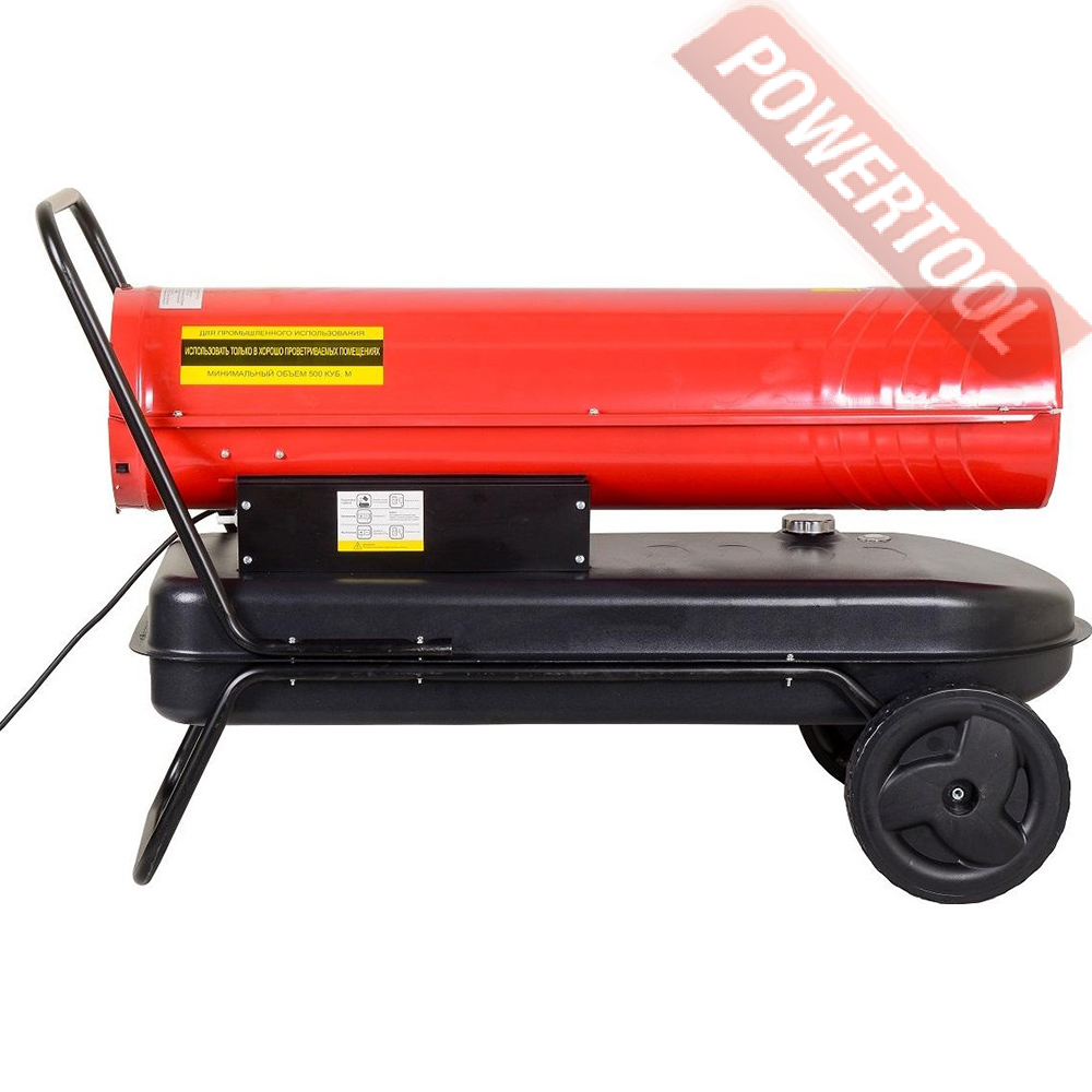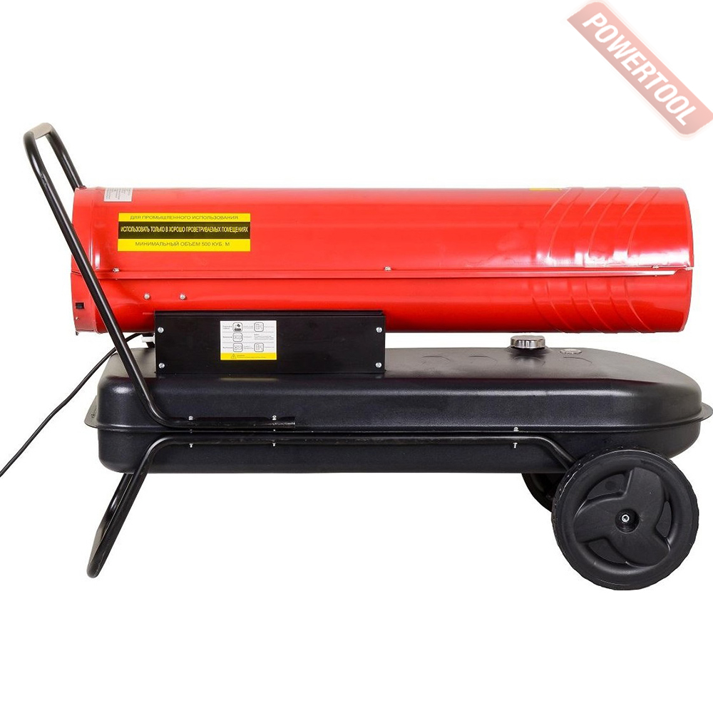 Корпус модели выполнен из антикоррозийного материала и обладает повышенной теплоизоляцией. Благодаря термостату вы можете регулировать степень нагрева и нужную температуру. Тепловую пушку легко перемещать по помещению при помощи колес.