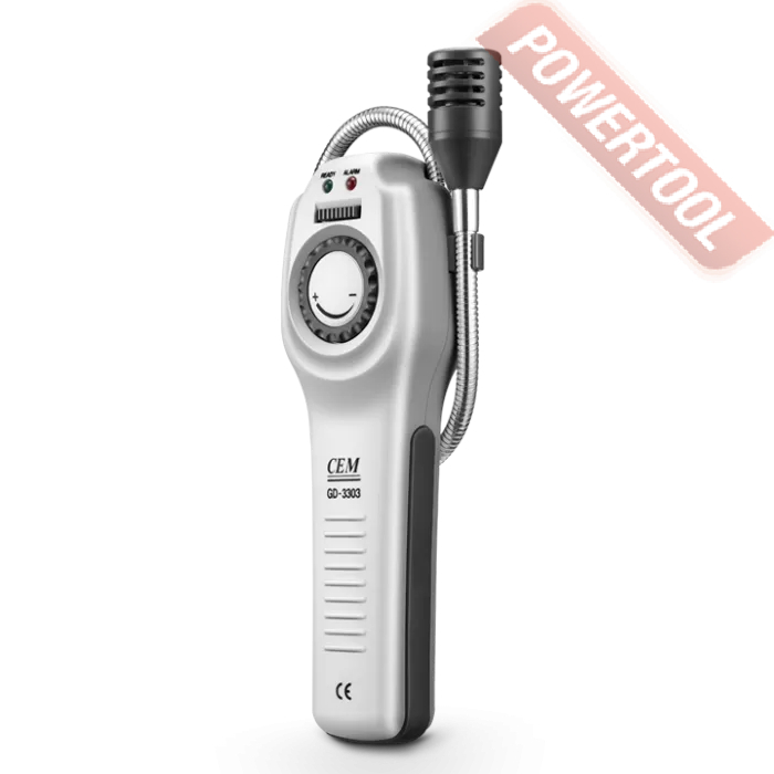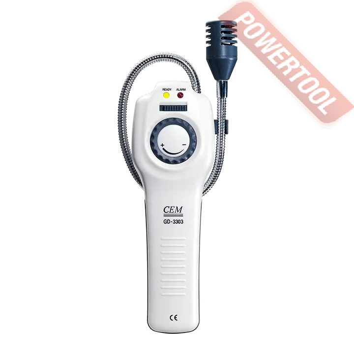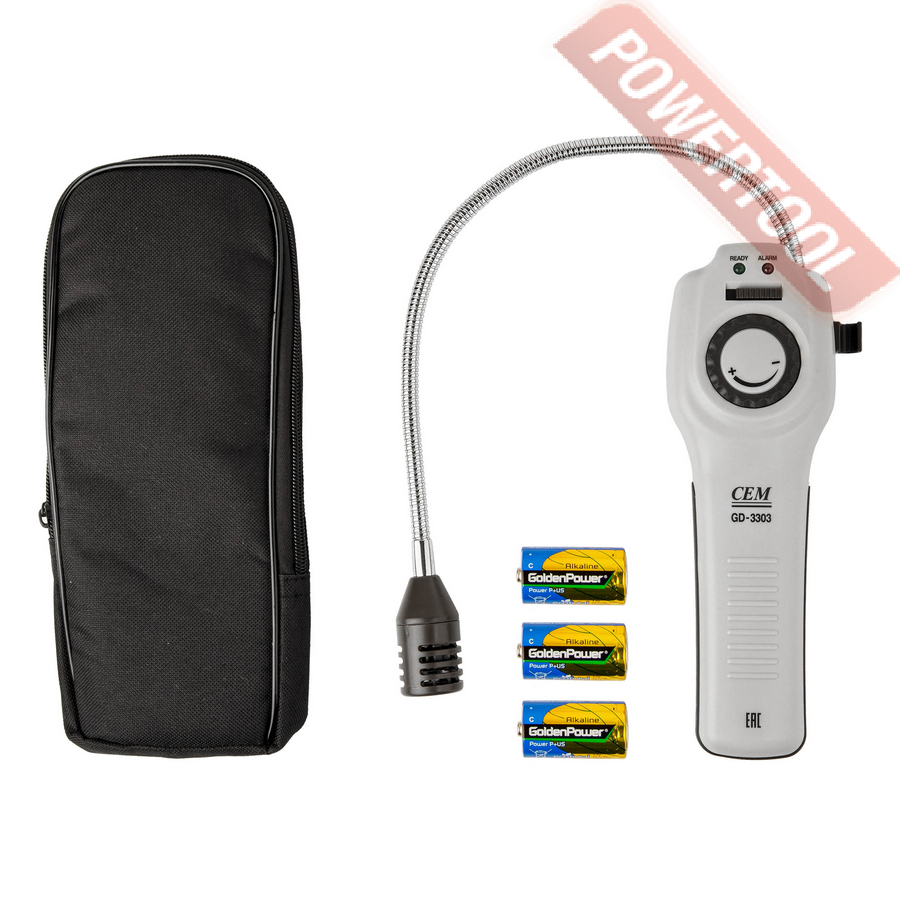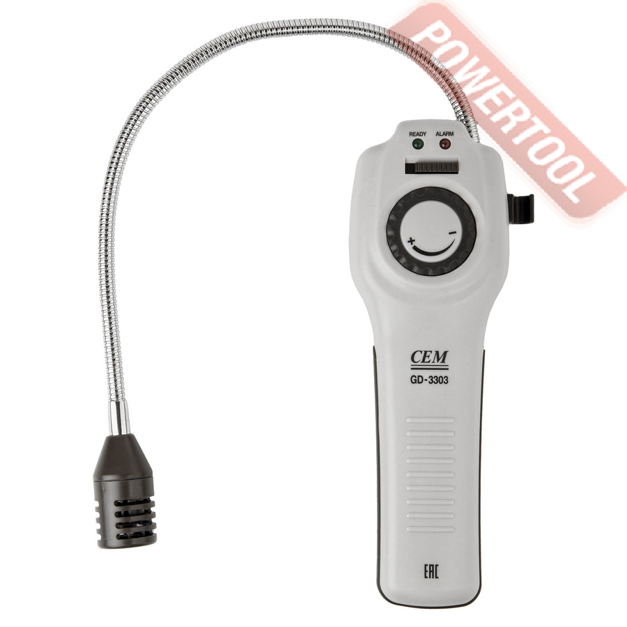 Газоанализатор детектор утечек хладагентов CEM GD-3303 предназначен для обнаружения хладагентов: R-22, R-124, R-11, R-12, R-134a, R-404A, R-410A, R-407C. Прибор оснащён гибким зондом, позволяющим определять утечку в труднодоступных местах.