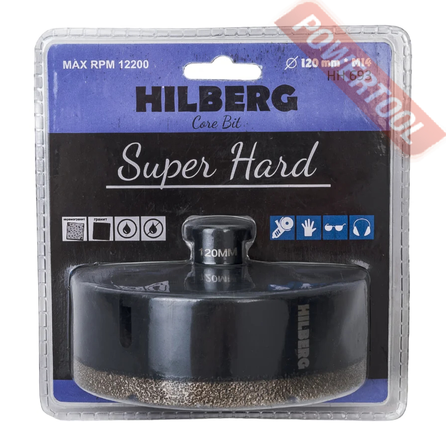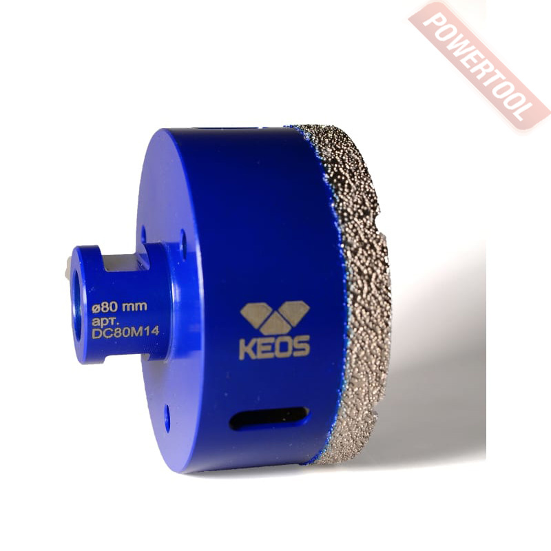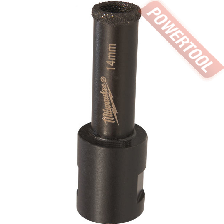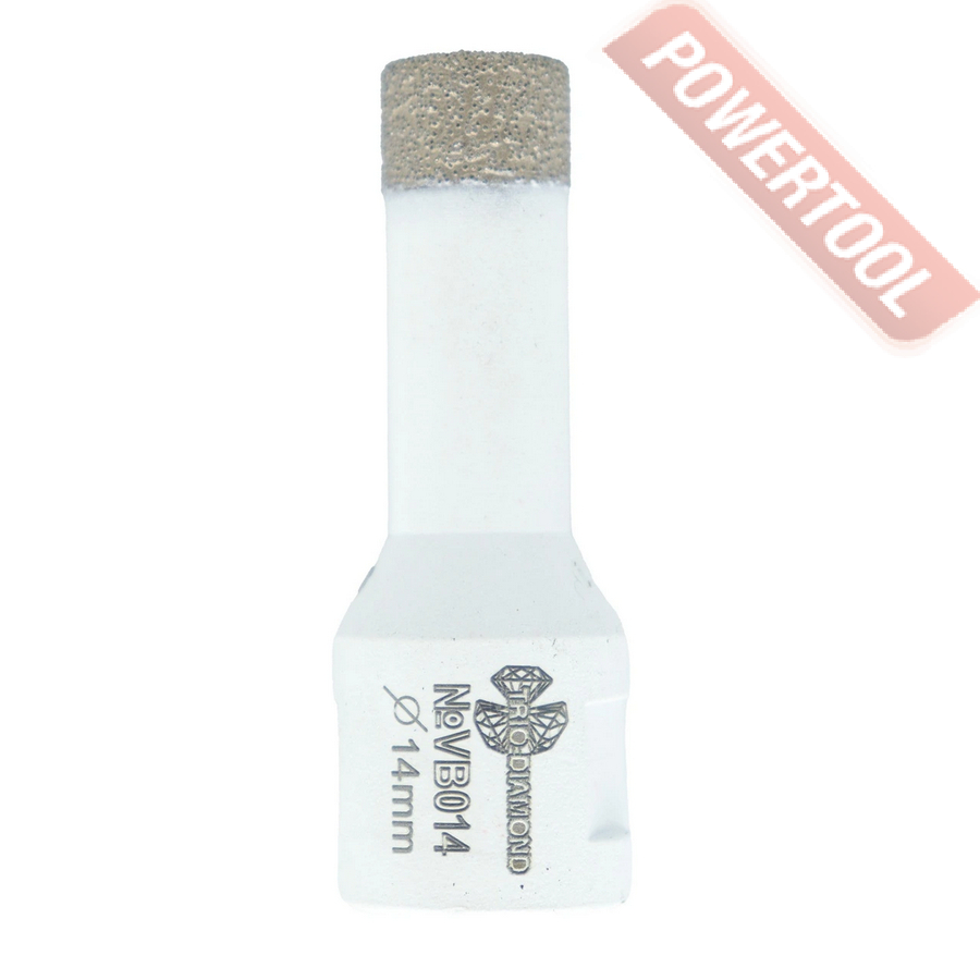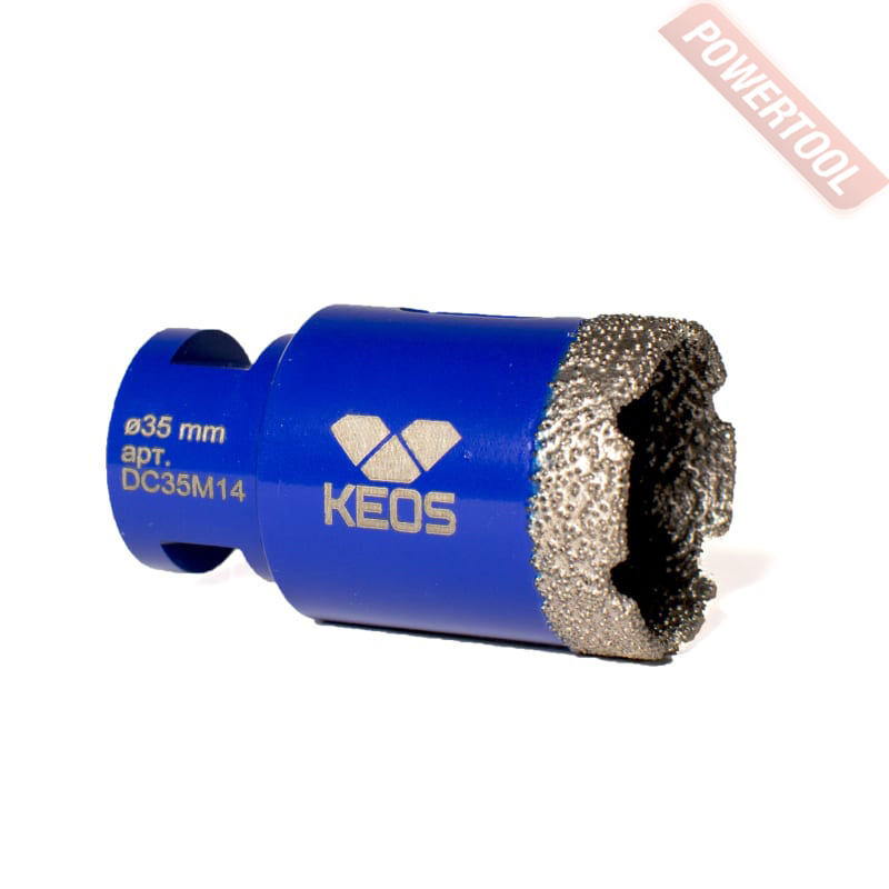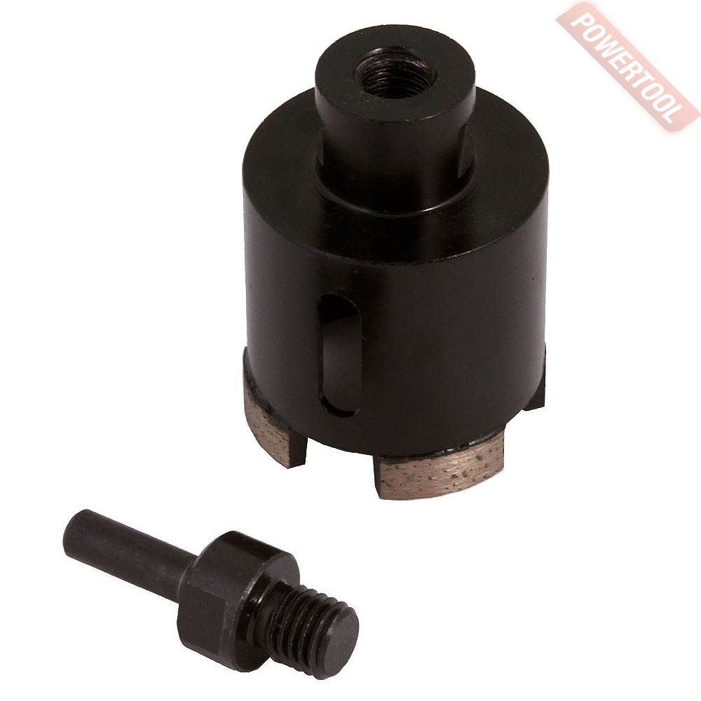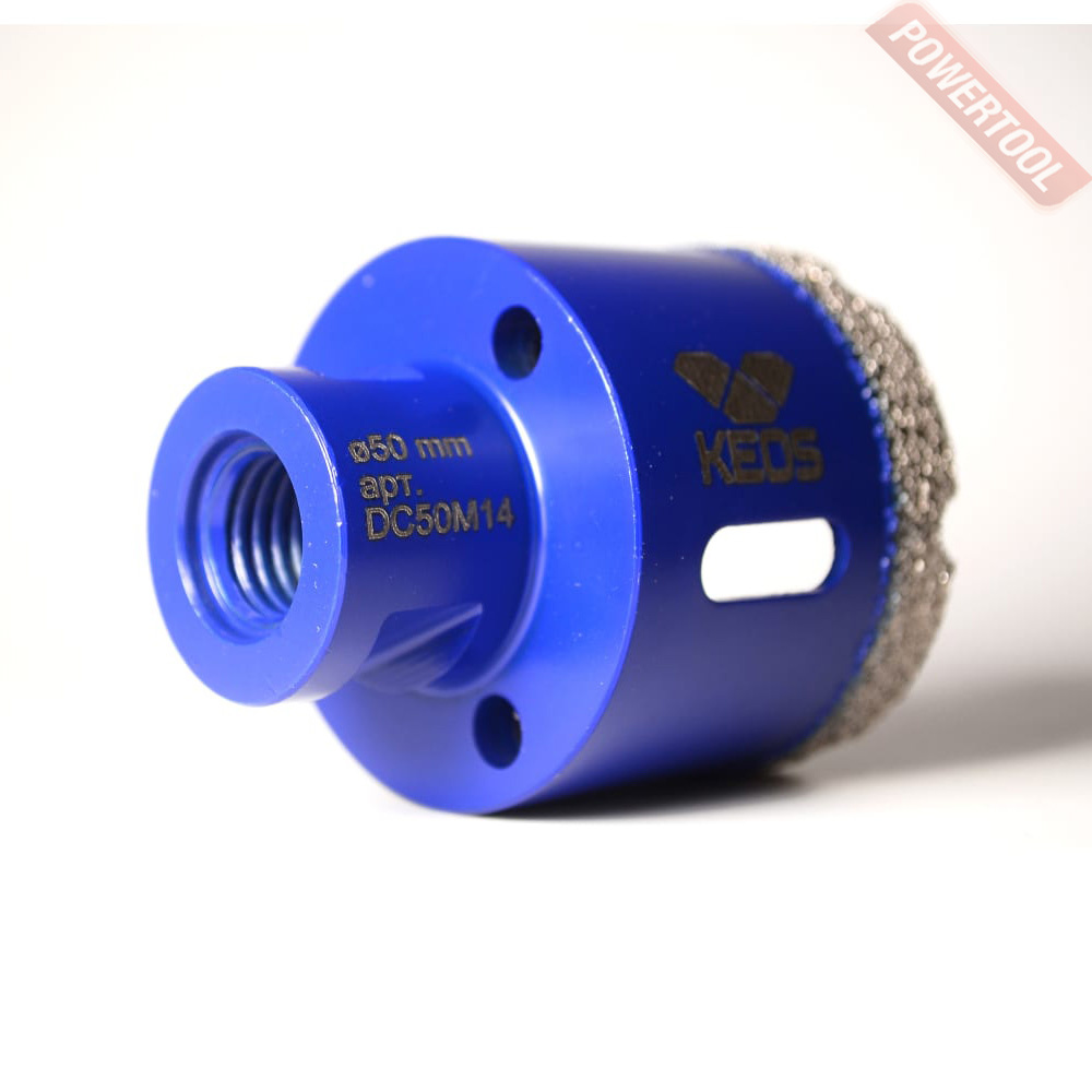 Коронка алмазная универсальная кольцевая для УШМ, диаметр 14 мм, глубина сверления 35 мм, тип хвостовика M14, вакуумное спекание сегмента, сухое сверление, предназначена для сверления отверстий в керамограните, камне, керамике, бетоне, кирпиче, ограниченно листового металла, дерева и комбинаций всех этих материалов.