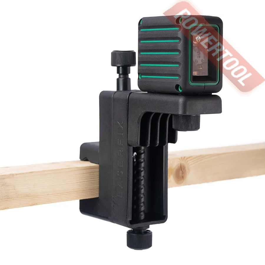 - Вращение на 360 градусов. Крепление вращается относительно струбцины на 360 градусов. Такая конструкция позволяет установить крепление на поверхности с любым наклоном. Для приведения закрепленного лазерного уровня в рабочее вертикальное положение достаточно повернуть вращающуюся часть крепления.