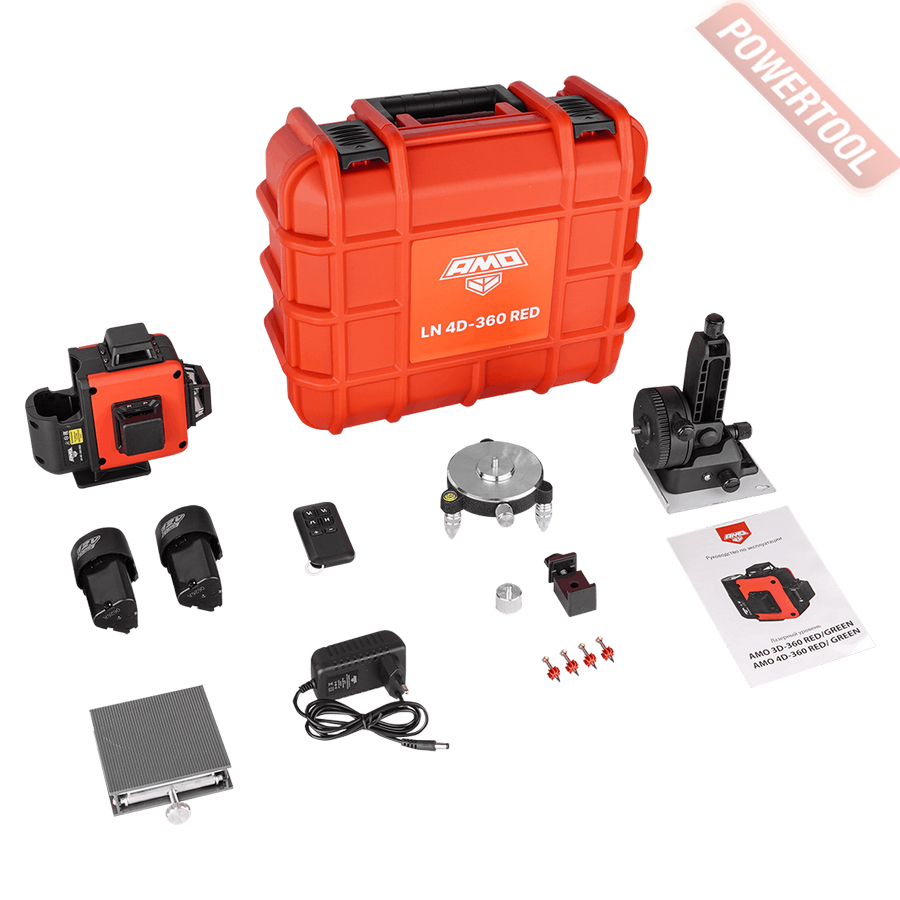 • 1. Лазерный уровень построитель плоскостей AMO LN 4D-360 Red.