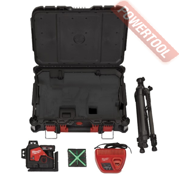 Лазерный уровень построитель плоскостей MILWAUKEE M12 3PLSKIT-401P с 3 линиями по 360 градусов с зелёным лучом обеспечивает широкий функционал, горизонтальную и 2 вертикальные линии, выравнивание, построение прямых углов, перенос точек. Всё это позволит быстро разметить большие пространства одним инструментом