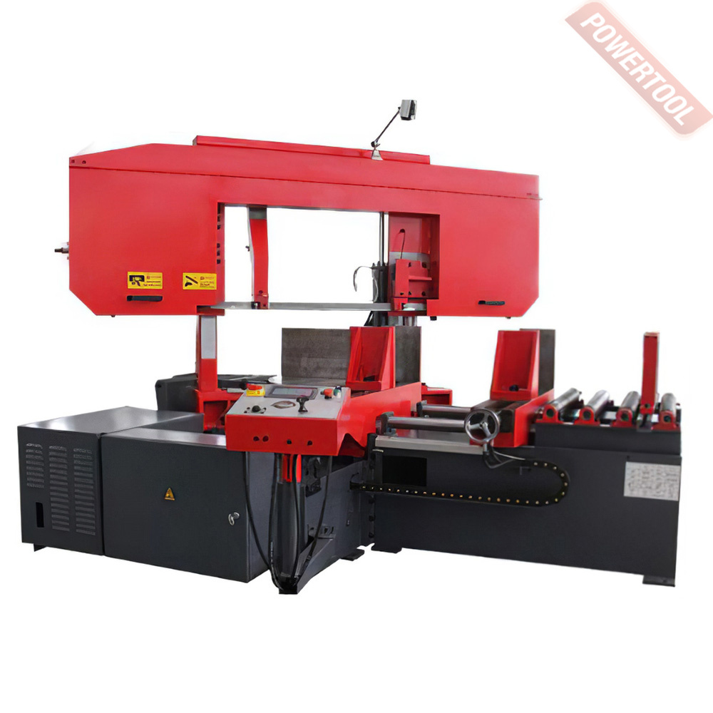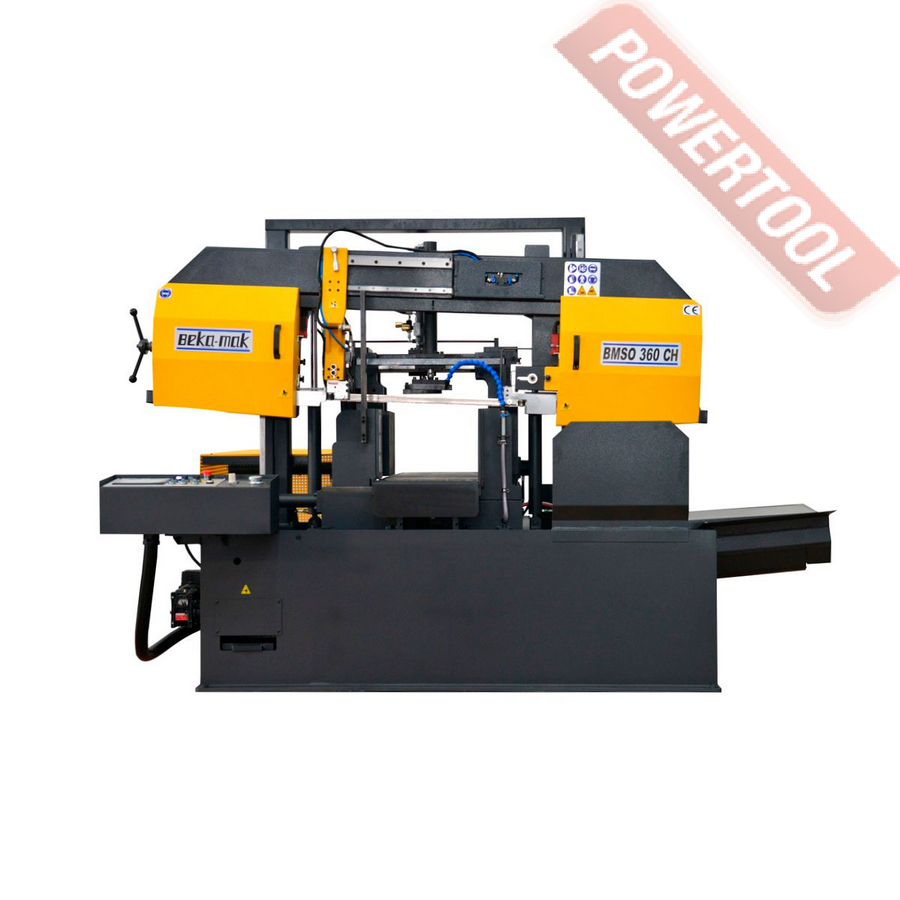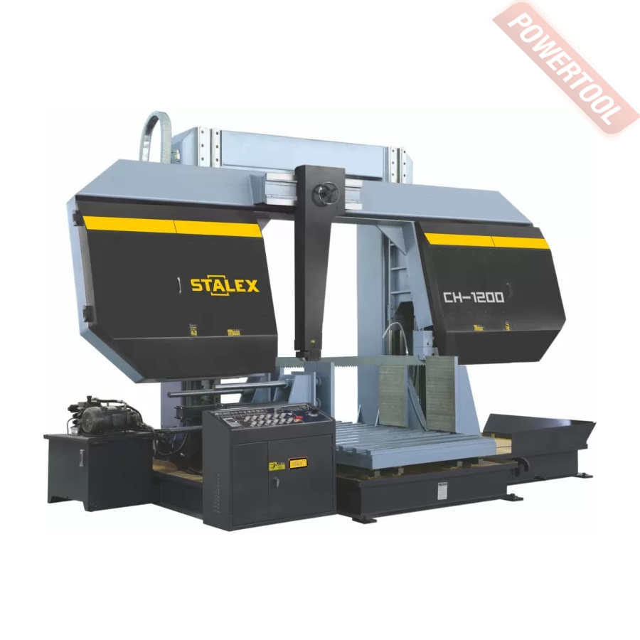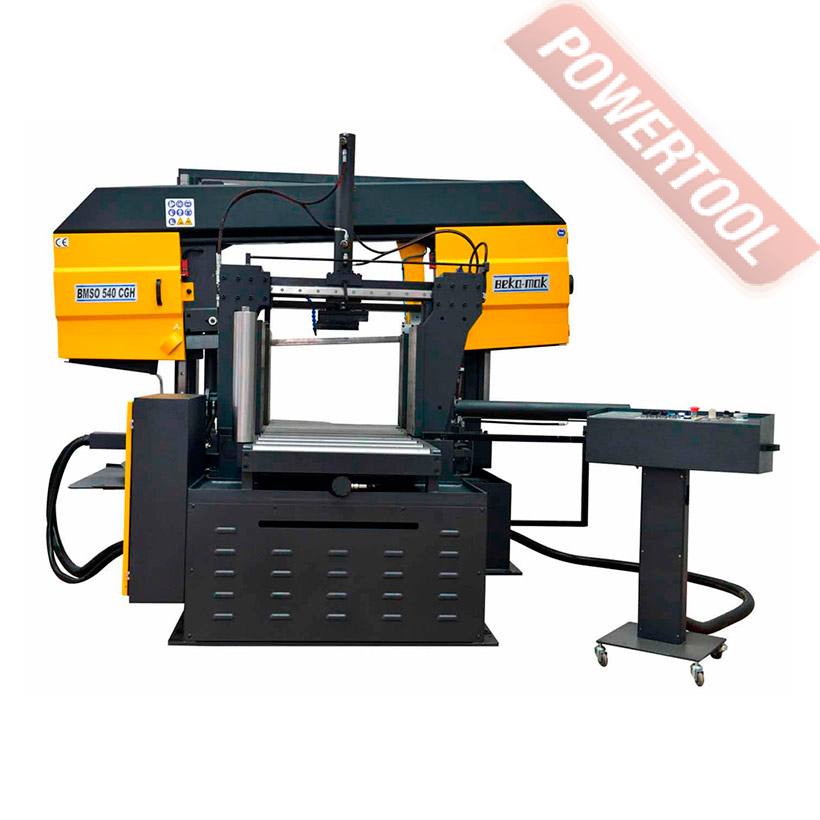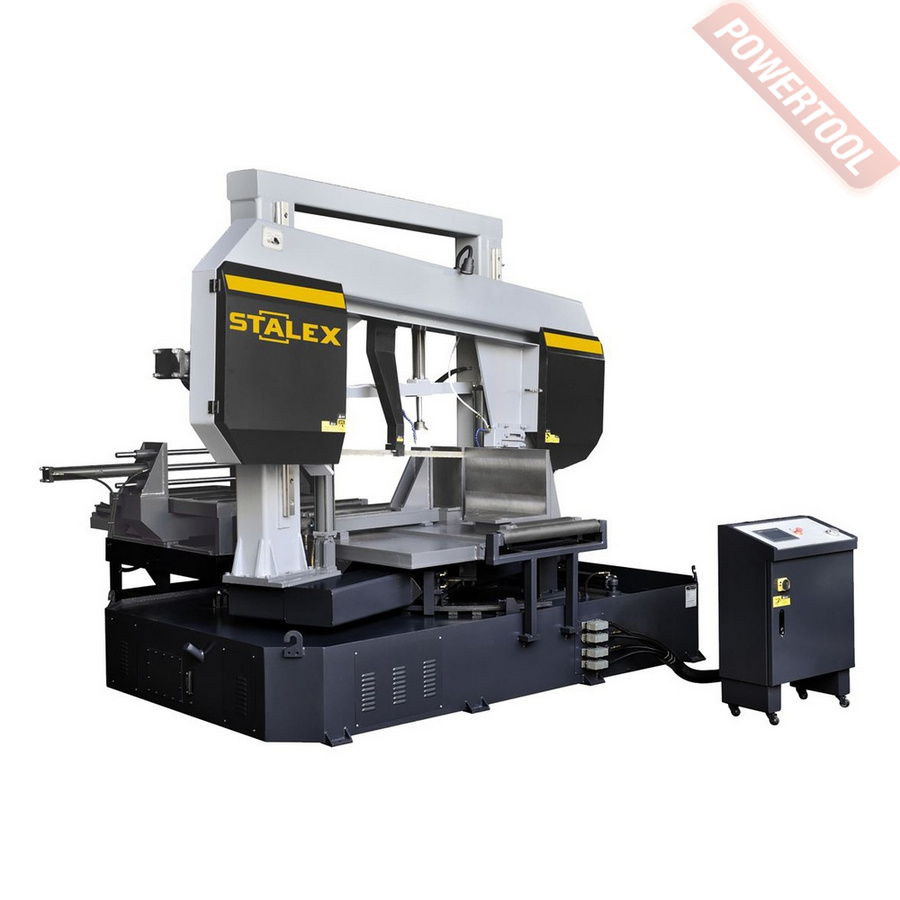 Ленточная пила по металлу STALEX BS-850G - полностью автоматический колонный станок, который является мощным оборудованием для промышленной резки в условиях серийного производства. Одностоечные ленточнопильные станки имеют 2 вертикальные стойки (колонны). Первая колонна основная большего диаметра по которой вертикально перемещается горизонтальная пильная рама, вторая колонна направляющая, данная колонна задаёт окончательное жёсткое направление рамы при работе и на холостом ходу. Пильная рама, представляет собой стальную сварную конструкцию. Режущий инструмент - бесконечная сварная ленточная пила. Полотно натягивается с помощью натяжного шкива. Натяжной шкив приводится в движение приводным шкивом, который в свою очередь, приводится через редуктор. Ленточное полотно представлено на рынке широкой номенклатурой и позволяет обрабатывать огромный спектр материалов, включая нержавеющие и инструментальные стали. На автоматических станках возможна работа как в ручном режиме, когда каждая операция выполняется вручную посредством нажатия соответствующей кнопки, так и в автоматическом режиме, когда станок выполняет весь цикл резания.