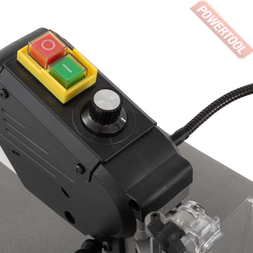 Что действительно важно для работы «целыми днями» и что самое главное - это то, что заготовки при пилении всегда располагаются на горизонтальном столе. Такой структуры нет у простеньких моделей. JSS от JET способен работать абсолютно без вибраций. При необходимости пилить под углами, наклон пилки происходит через наклон всего маятникового механизма. Для этого в подстолье с обеих сторон (фронтальной и тыльной) установлены стальные, зубчатые, направляющие полукольца. Весь механизм можно наклонить в любую из сторон вплоть до 30 в левую и до 45 в правую, просто используя для этого поворотную рукоятку. Движение пилки, верней частота хода, регулируется плавно для достижения оптимальной нагрузки и скорости пиления.
