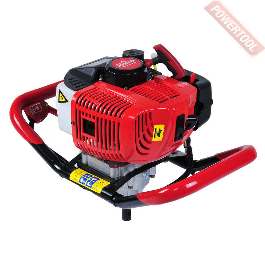 Мотобур земляной, 2-х тактный двигатель мощностью 3.26 л.с. объемом 71 куб.см, 8000 об/мин, диаметр буров до 300 мм, диаметр вала 20 мм, смесь 25к1, топливный бак 1,2 л, вес 10,3 кг, БЕЗ ШНЕКА.
