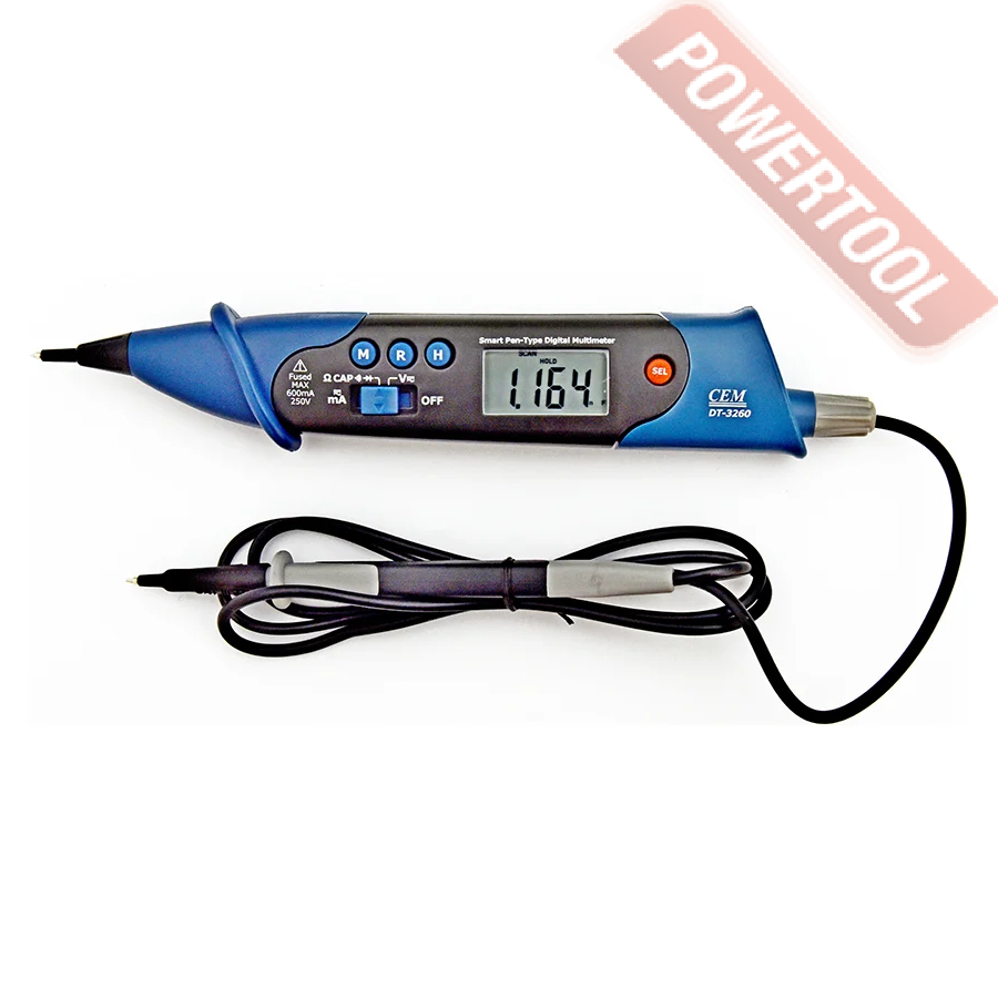 Мультиметр цифровой автоматический CEM DT-3260 - простой и удобный прибор для электрика, сборщика небольших электроприборов, домашнего мастера. Модель позволяет быстро и безопасно определять величину напряжения, силы тока, сопротивления и емкости. Для удержания показания достаточно нажать кнопку Н. Кнопка R служит для выбора нужного диапазона измерений.