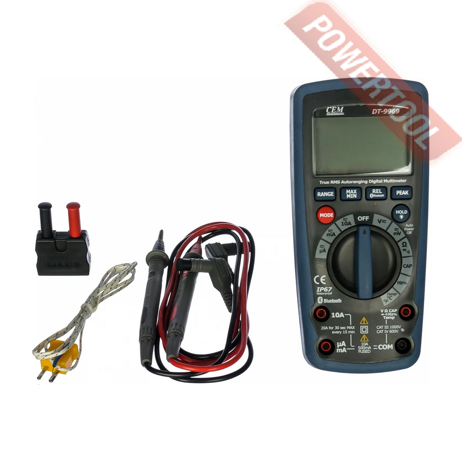 • Инновационные функции и возможности подключения. Наличие встроенного Bluetooth позволяет передавать результаты измерений с мультиметра CEM DT-9969 на компьютер или смартфон. Это открывает новые горизонты для анализа данных: вы можете сохранять результаты, создавать отчеты и делиться ими с коллегами в реальном времени.