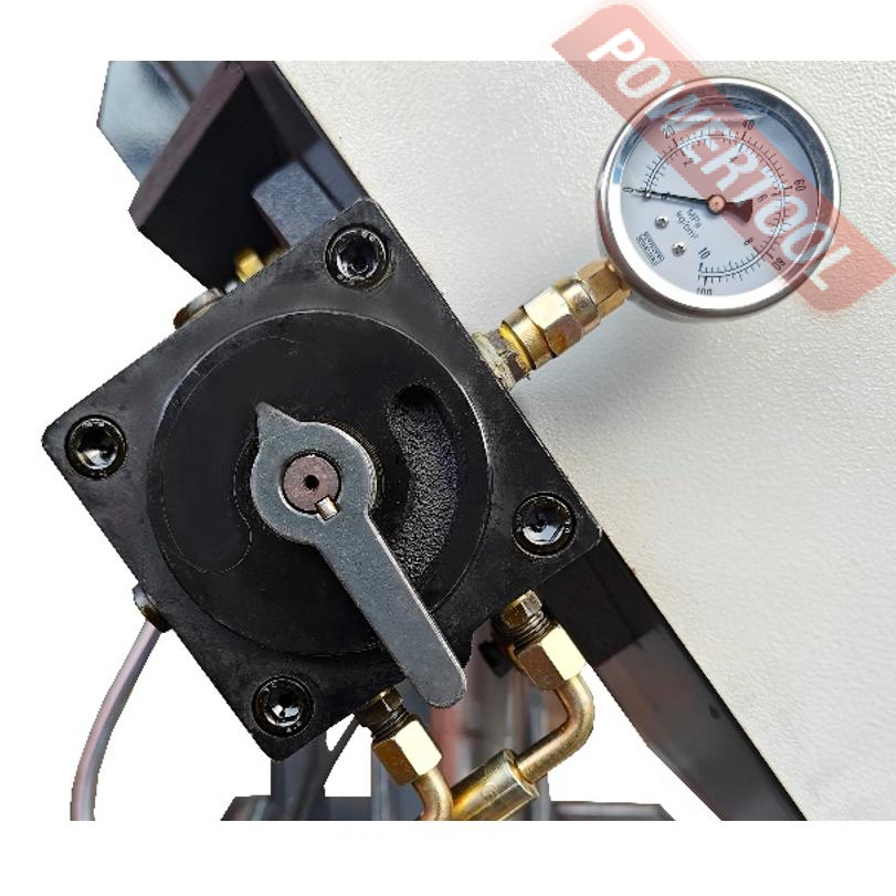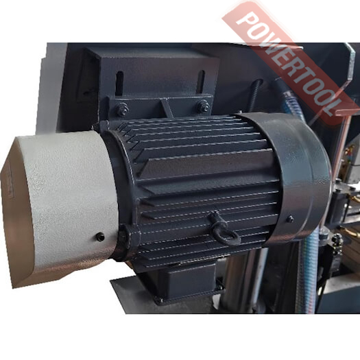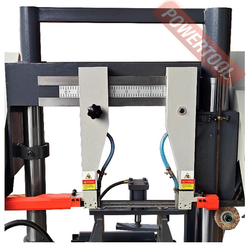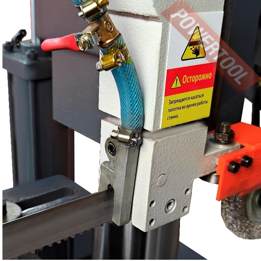 • Гидравлический блок с тензометром для натяжения полотна находится с левой стороны станка, блок позволяет контролировать натяжение полотна и тем самым получать стабильный рез и продлить срок службы полотна.
