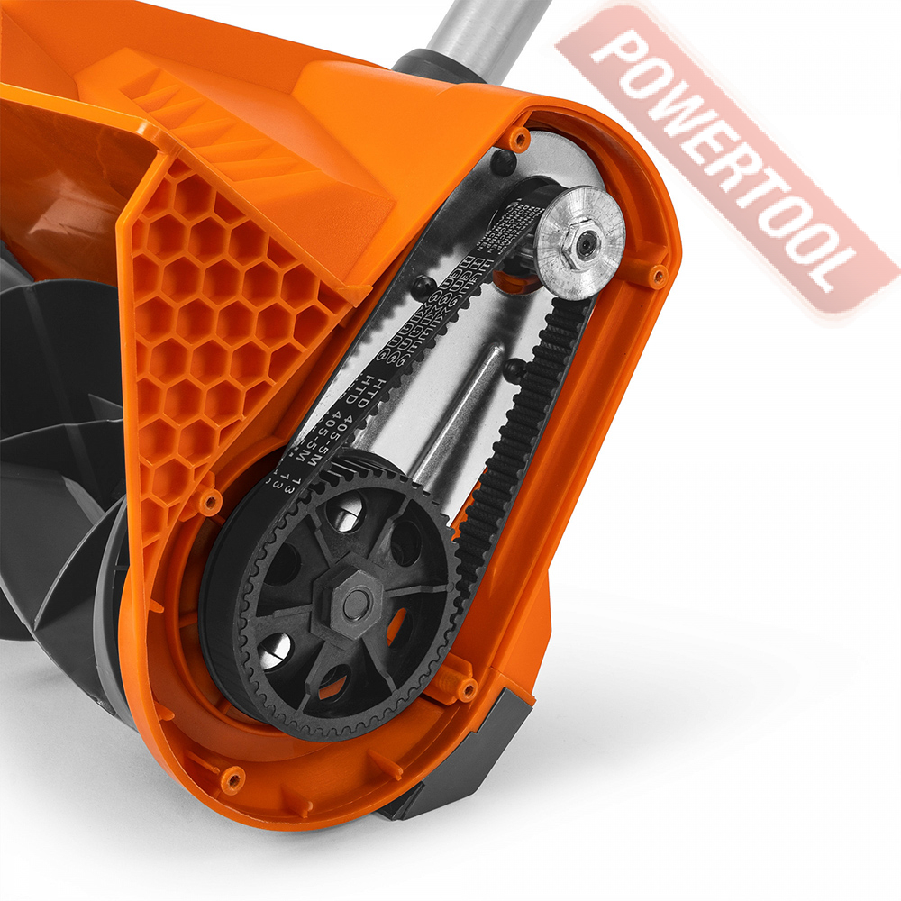 • Ременный привод. Ременной привод обеспечивает эффективную передачу крутящего момент двигателя на шнек и защищает двигатель в случае заклинивания шнека