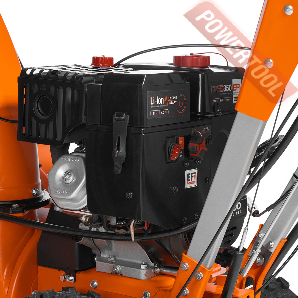 - WXE 350 EFI инжекторный двигатель DAEWOO. Инновационный двигатель WXE 350 EFI с системой непосредственного впрыска топлива разработан специально для снегоуборщиков. Обладает увеличенной до 25 процентов мощностью и сниженным до 20 процентов расходом топлива по сравнению с карбюраторными моделями.