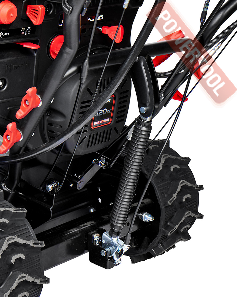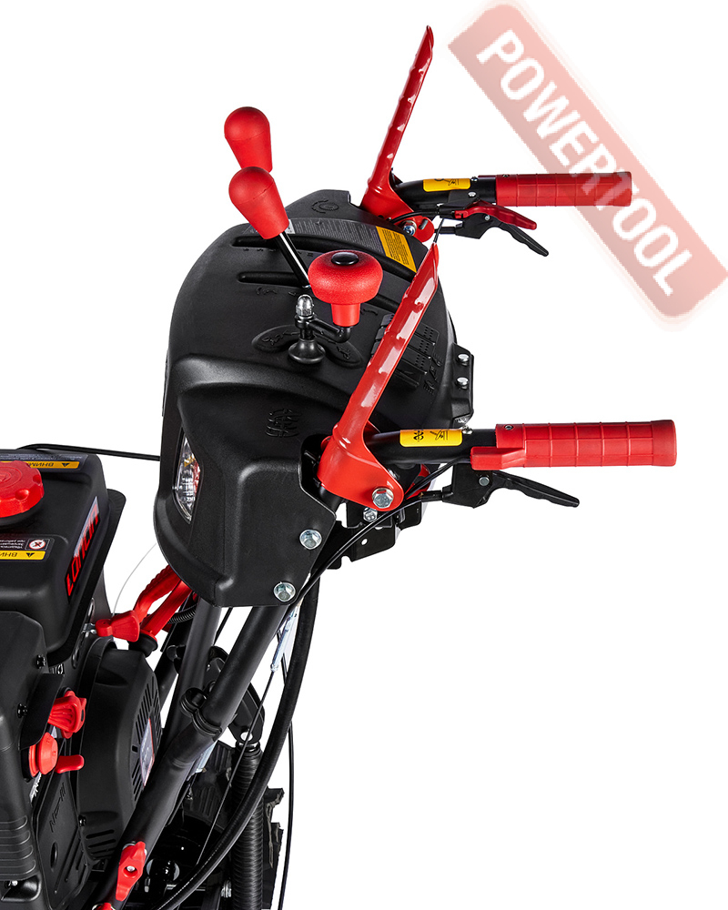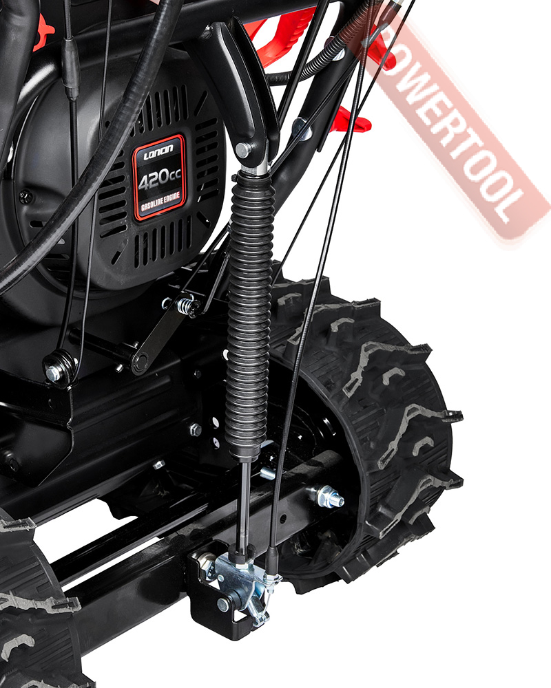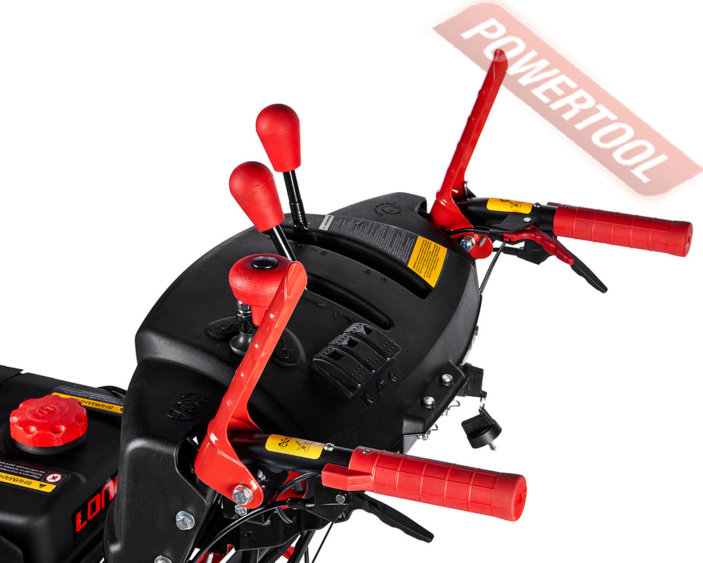 Снегоуборщик гусеничный самоходный, ширина ковша 76 см, высота ковша 54,5 см, скорости 6 вперед и 2 назад, выбор направления и дальности выброса снега рукоятками с панели оператора, угол поворота желоба 190 градусов, дальность выброса достигает до 15 м, разблокировка гусениц двумя курками под каждой рукояткой, подогрев рукояток, LED-фара, гусеницы 88х13,8 см, 4-тактный бензиновый двигатель Loncin LC190FDS объемом 420 куб.см мощностью 14 л.с., электростартер от аккумулятора 12 В, топливный бак 5,5 л, расход топлива 1,2 л/ч, емкость картера 1,1 л, трансмиссия фрикционный диск, вес 130 кг.