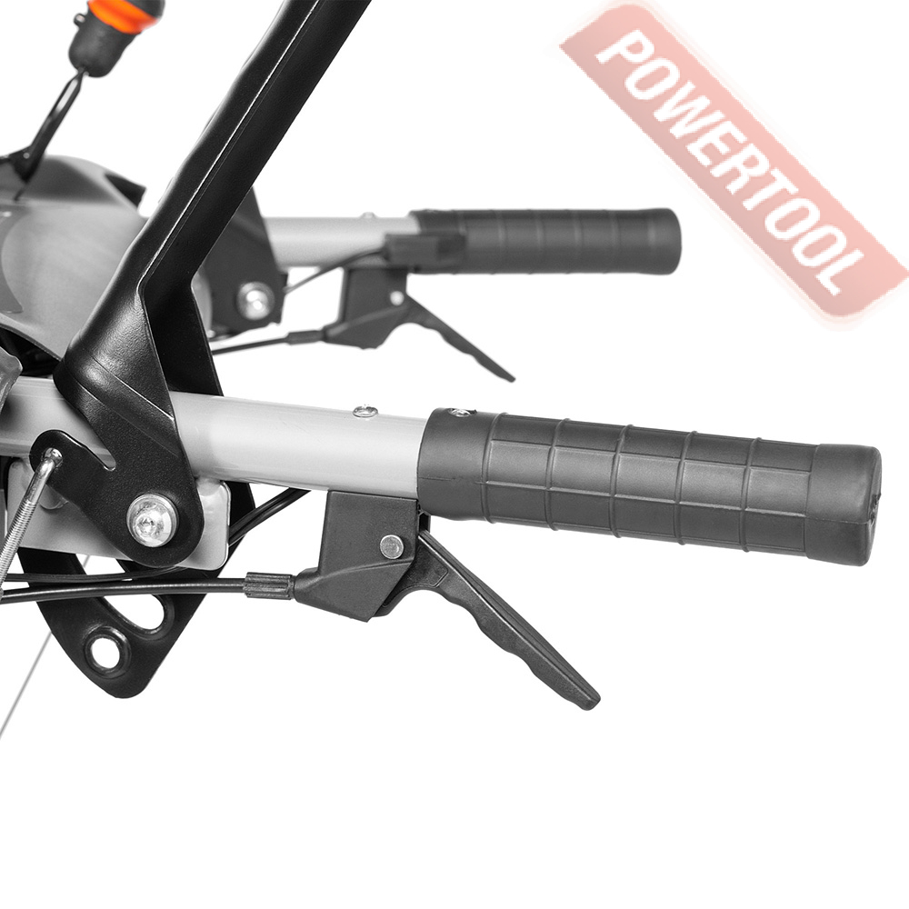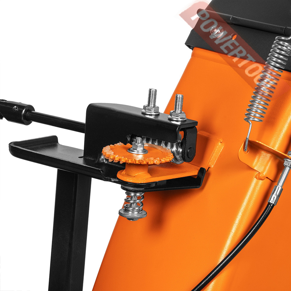 - Взаимная блокировка рукояток. Нажатие 2-х рукояток управления приводит к их взаимной блокировке. Это позволяет управлять снегоуборщиком одной рукой, и одновременно изменять направление и дальность выброса снега без остановки работы.
