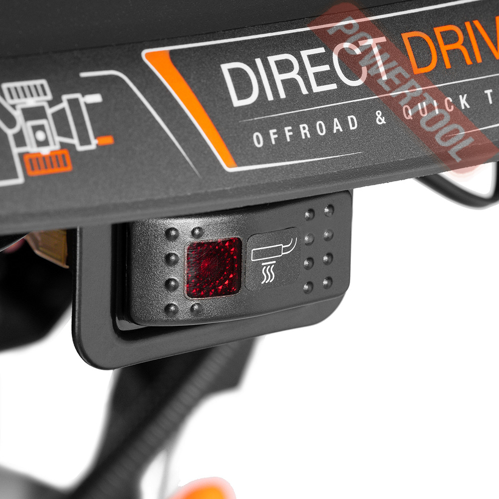 - Подогрев рукояток. Для комфортной работы при низких температурах снегоуборщик снабжен подогревом рукояток управления. Кнопка включение и выключение размещена на панели и защищена от попадания снега и влаги.