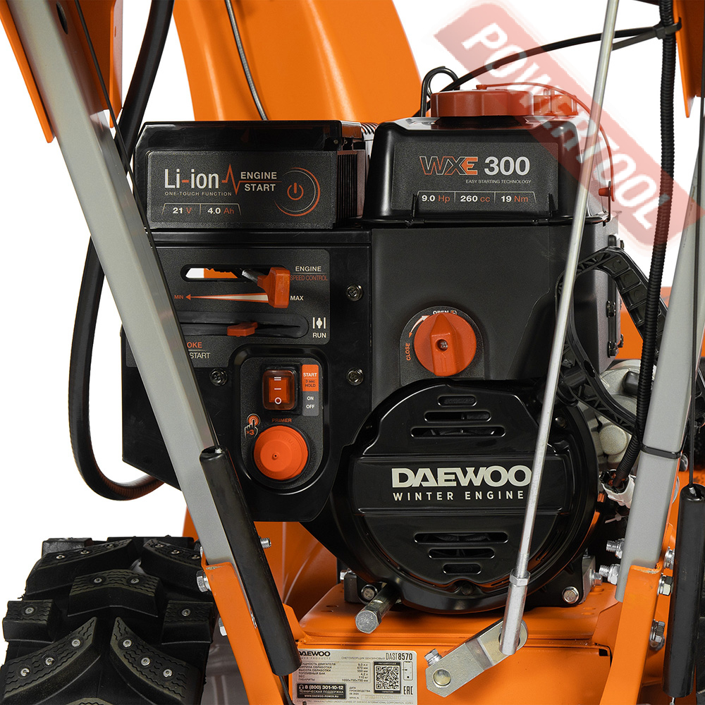- Двигатель DAEWOO зимней серии WXE 300. Уверенный запуск при отрицательных температурах. Повышенный моторный ресурс. Увеличенный глушитель и сниженный уровень шума. Вместительный топливный бак на 4,2 литра.