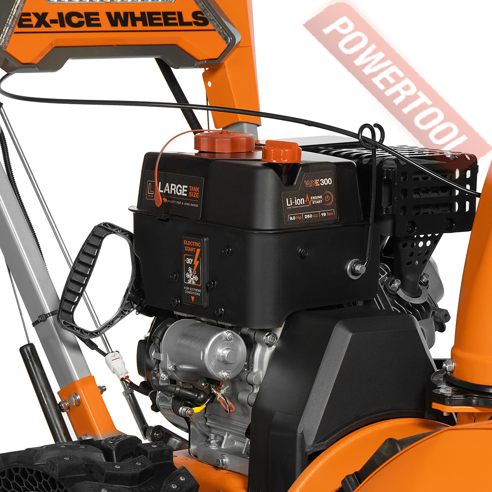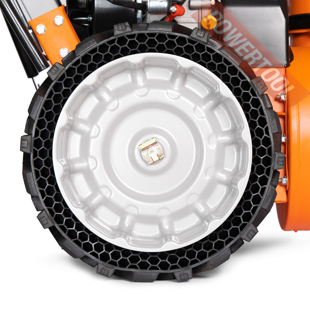 - Уникальные колеса EX‑ICE WHEELS. Широкие безвоздушные колеса созданы специально для снегоуборщиков. Колеса EX‑ICE обладают лучшим сцеплением с поверхностью среди всех зимних шин. Лучшая проходимость и маневренность в классе снегоуборщиков.