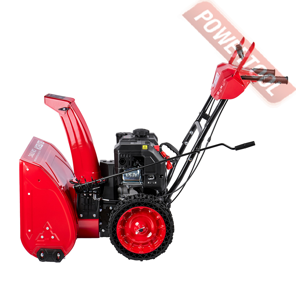 Снегоуборщик колесный самоходный, ширина ковша 61 см, высота ковша 52 см, скорости 6 вперед и 2 назад, выбор направления выброса снега осуществляется вращением боковой рукоятки, угол поворота желоба 180 градусов, дальность выброса регулируется вручную на желобе и достгиает 12 м, пневматические колеса 33 см, 4-тактный бензиновый двигатель ELITECH R210S-S объемом 209 куб.см и мощностью 5,5 л.с., топливный бак 2,3 л, емкость картера 0,5 л, трансмиссия фрикционный диск, габариты 1250х635х1100 мм, вес 63,5 кг.