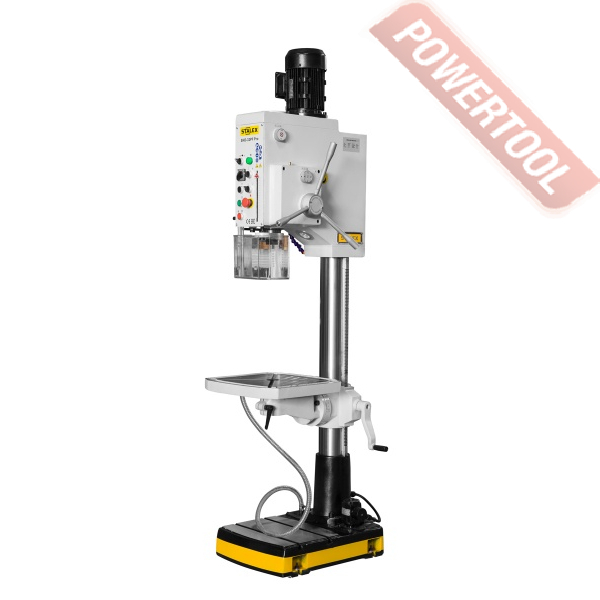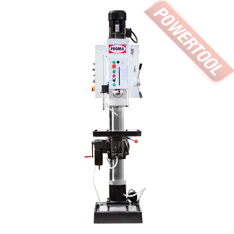 Редукторный сверлильный станок, 4500 Вт, 380 В, max диаметр сверления 50 мм, max нарезаемая резьба M33, max диаметр концевой фрезы 25 мм, max диаметр торцевой фрезы 100 мм, частота вращения шпинделя 50-1510 об/мин, 6 скоростей, бесступенчатая регулировка оборотов, автоподача пиноли с диапазоном 0,1/0,2/0,3/0,4 мм/об, конус шпинделя КМ-4, посадочное сверлильного патрона B16, ход пиноли шпинделя 200 (170) мм, вылет шпинделя 340 мм, шпиндель-стол 713 мм, шпиндель-основание 1469 мм, диаметр стойки 180 мм, размер основания 1026х580 мм, размер стола 240х820 мм, ход стола по оси X/Y 460/280 мм, 4 Т-образных паза 17 мм, габариты 1026х600х2324 мм, вес 750 кг, в комплекте оправка КМ-4/B16, система СОЖ 8 л 100 Вт, защитный экран, рукоятки подачи, рукоятки перемещения стола.