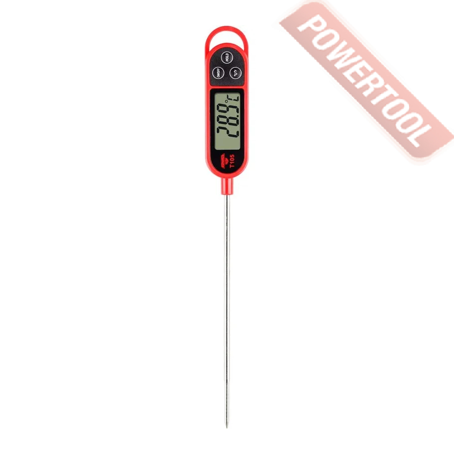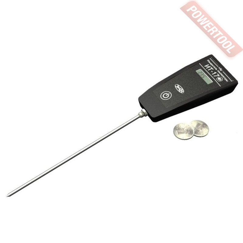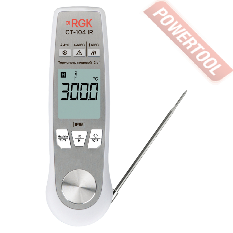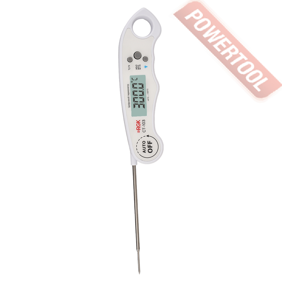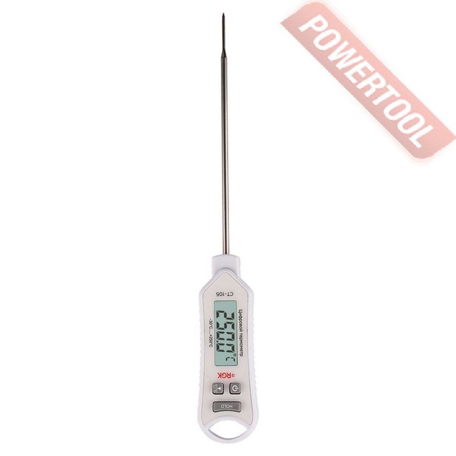 Контактный пищевой термометр, диапазон термодатчика от -50 до 300 градусов С, разрешение 0,1 градус С, индикация max/min, функция Hold, выбор единиц C/F, питание от 1 батареи 3В тип CR2032, автоотключение, габариты 245х18х33 мм, 0,035 кг.