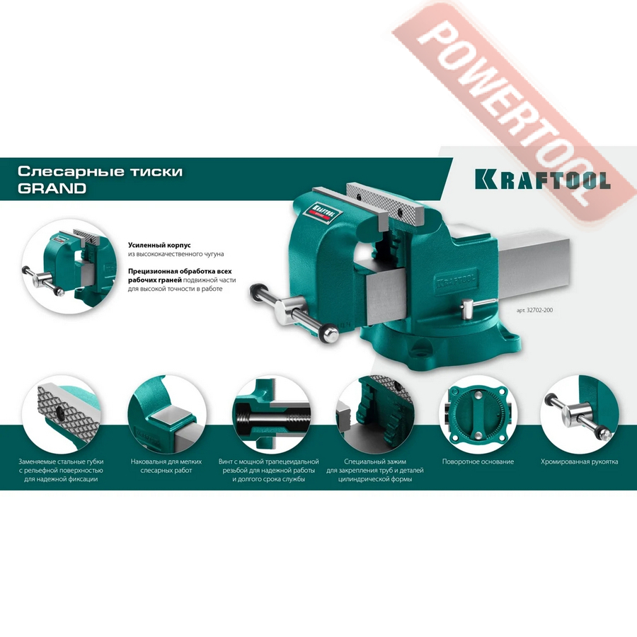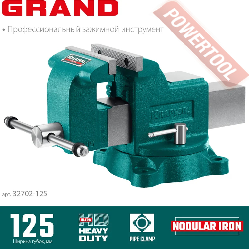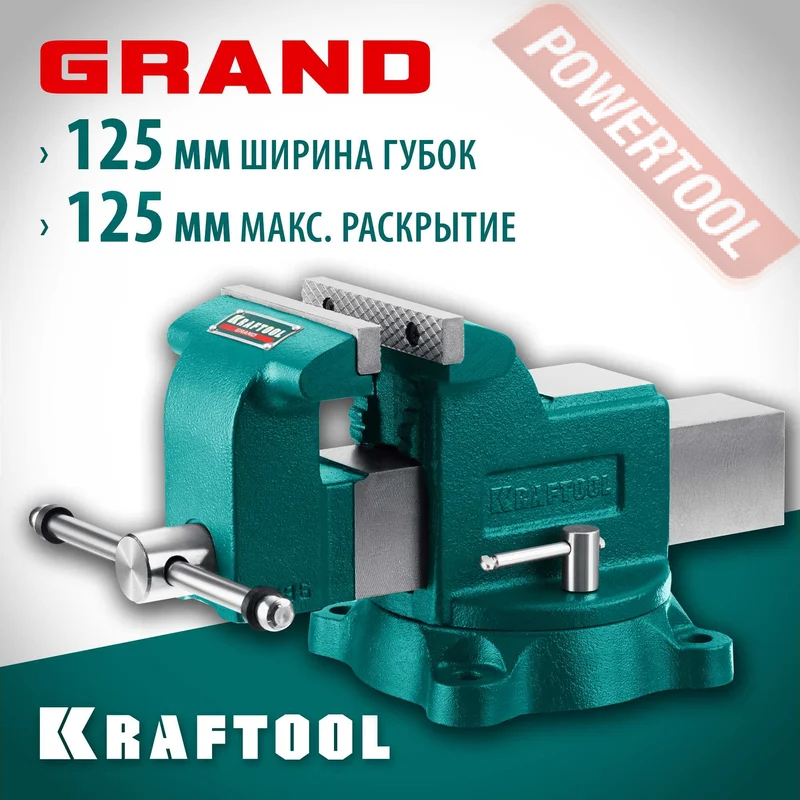 Тиски слесарные поворотные 125х125 мм KRAFTOOL Grand арт.32702-125