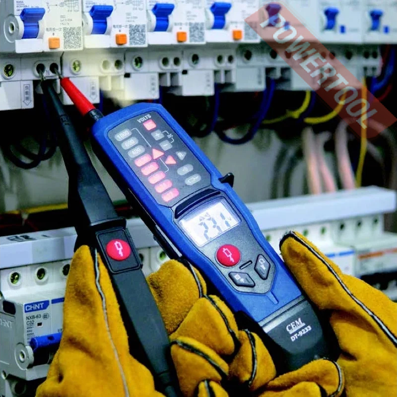 Указатель напряжения CEM DT-9233 — это двухполюсный тестер, входящий в комплект из двух щупов, предназначенный для контактного и бесконтактного обнаружения переменного напряжения. Он позволяет определить наличие напряжения, его уровень, полярность и направление вращения поля в трехфазных системах. Прибор соответствует высоким стандартам безопасности и подходит для профессионального использования.