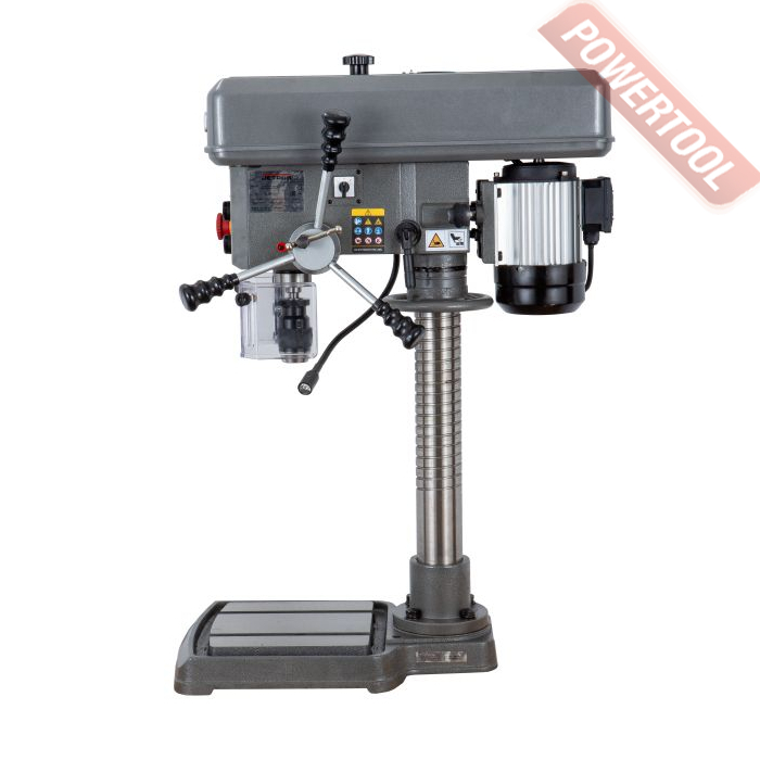 Сверлильный станок, 550 Вт, 380 В, max диаметр сверления 16 мм, max нарезка резьбы M10, частота вращения шпинделя 300-3500 об/мин, 5 скоростей, ступенчатая регулировка оборотов, реверс, посадочное сверлильного патрона B16, диапазон хвостовиков для патрона 1-16 мм, ход пиноли шпинделя 85 мм, вылет шпинделя 180 мм, шпиндель-основание 540 мм, диаметр стойки 70 мм, размер основания 490х310 мм, размер стола 238х240 мм, 2 Т-образных паза 14 мм, подсветка рабочей зоны, габариты 680х325х980 мм, вес 62 кг, в комплекте патрон быстрозажимной В16 1-16 мм, защитный экран.