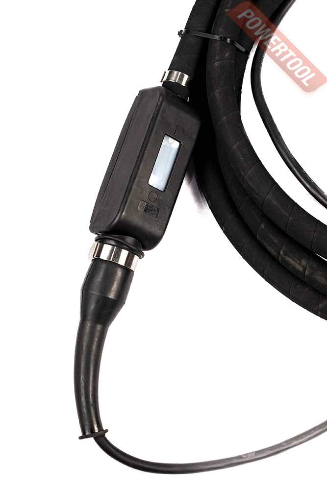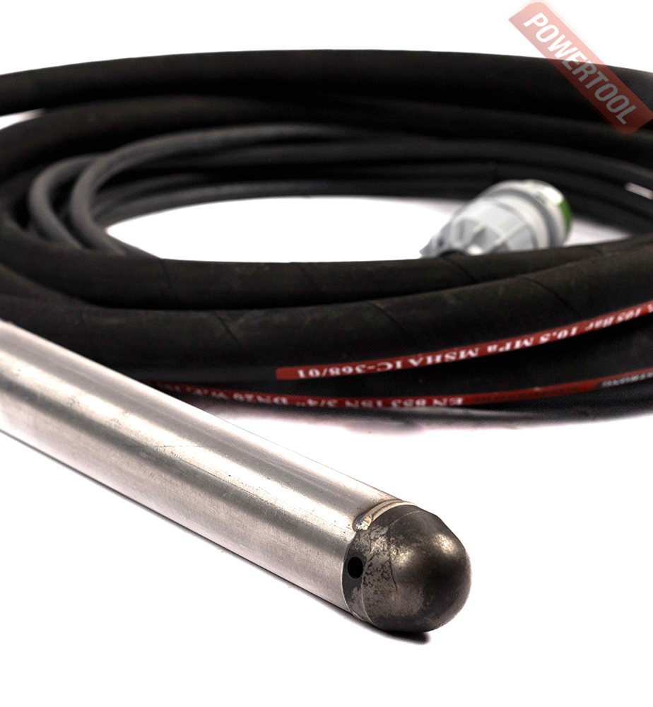Оснащен системой защиты от перегрева, класс влагозащиты вибробулавы IP 68. Комплект включает в себя гибкий вал длиной 5 метров, вибробулаву со встроенным высокочастотным двигателем, электрический кабель с выключателем длиной 10 метров.